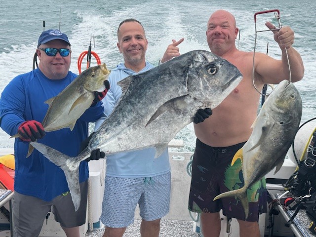 Spearfishing Charter! We are the PREMIER DIVE SHOP and spearfishing charter in the Upper Keys! We cater to the needs of beginner thru advanced spearfishing levels! Most of our dives (weather permitting), are around 50-100ft and we generally drift so spearos are not covering the same sections of reef twice, and this allows you to dive the WHOLE REEF! We are the ONLY operation to spear up to the John Pennekamp legal line and as far south as Alligator Reef, allowing you to spear the ENTIRE Upper Keys! Our spearos regularly spear GROUPERS, SNAPPER, HOGFISH, TRIGGER, PERMIT, AND AFRICAN POMPANO! Lionfishing is ALWAYS welcomed on these trips as well as these trips are a great chance to cover some ground and eradicate those pesky, delicious, invasive fish! Spearos going deep MUST use NITROX!
